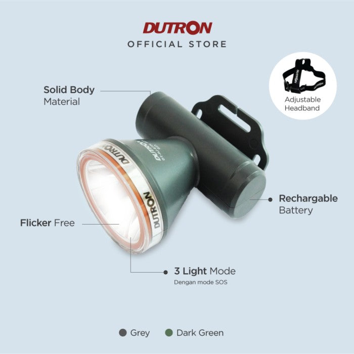 DUTRON NOVA BEAM Senter Kepala LED putih Head Lamp water resistance Rechargeable 7 Watt